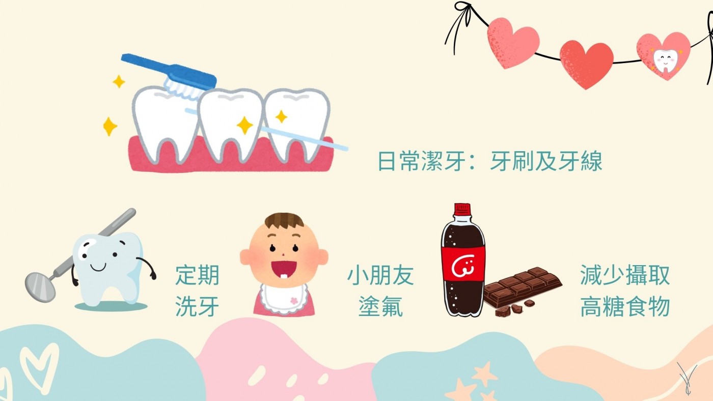 • 健康飲食:減少高糖食物和飲料的攝取,有助於預防蛀牙。