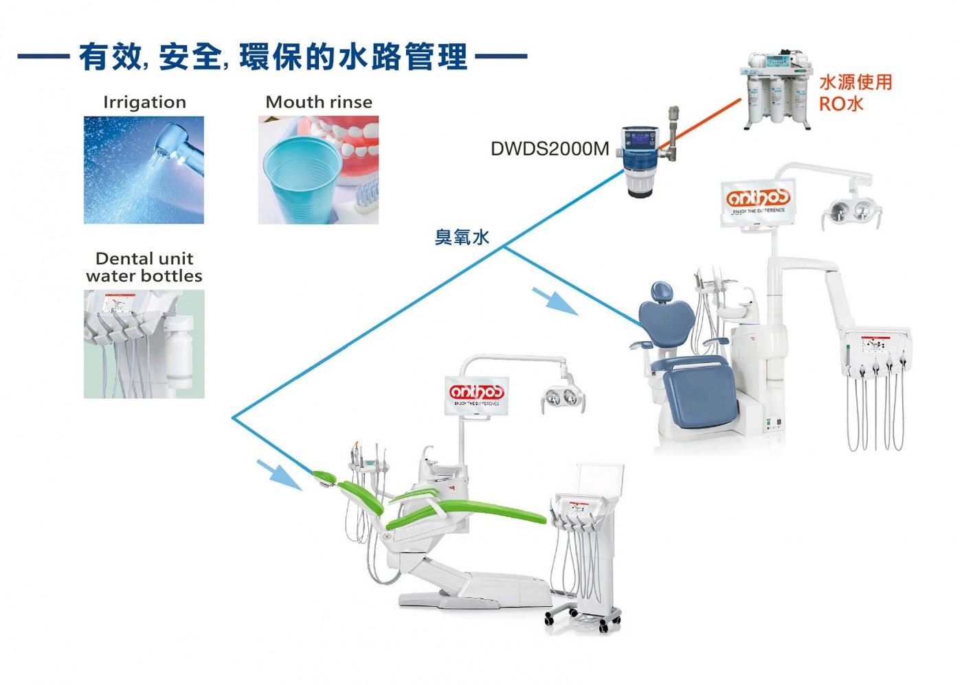 蒔雨牙醫每日都於開診前及下診後使用管路消毒藥水消毒管線,除消毒之外,藥水還添加酵素,讓管路中的血水獲得分解,有效保持管路暢通。 除此之外,我們還引進【DWDS臭氧殺菌水系統】,DWDS臭氧殺菌水系統專為牙科治療椅水路管線設計,使用先進的專利EOG水電解技術,瞬間將水轉化成可殺菌之臭氧水,能改善管線生物膜問題,降低治療風險。