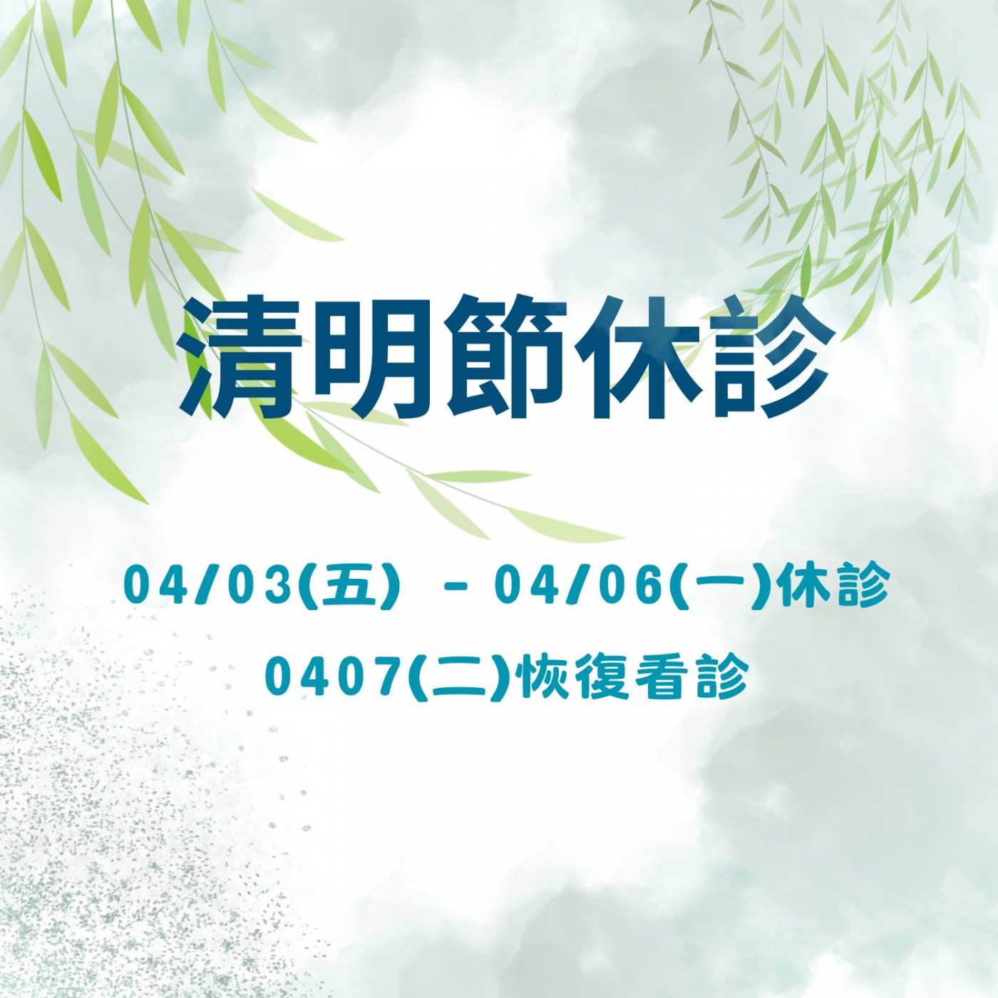 診所於04/03(五) - 04/06 (六) 休診
